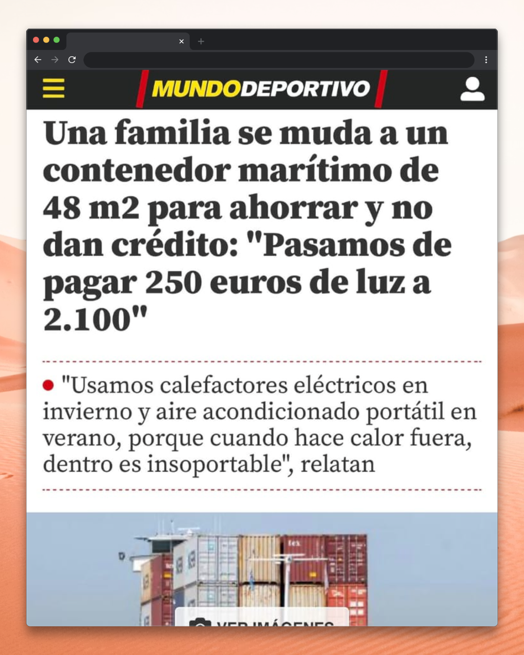 La noticia que analizamos es sobre una familia que decidió mudarse a un contenedor marítimo de 48 m² para ahorrar, y ha generado mucho debate. El titular es llamativo, dice que pasaron de pagar alrededor de 250 euros de luz a luego verse con una factura sobre los 2.000 euros en determinados momentos del año. Según explican, utilizan calefactores eléctricos en invierno y aire acondicionado portátil en verano porque el interior se vuelve difícil de habitar con las temperaturas extremas.