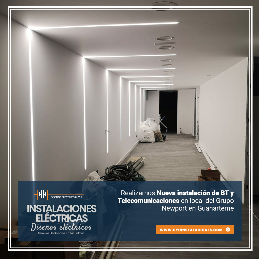En este trabajo que compartimos realizamos una NUEVA Instalación Eléctrica de Baja Tensión y la instalación de Telecomunicaciones en este local del Grupo Newport en Guanarteme, Las Palmas de Gran Canaria