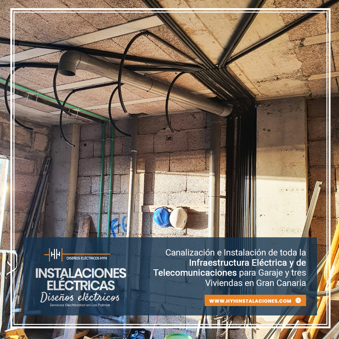 Proyecto de Canalización e Instalación de toda la Infraestructura Eléctrica y Telecomunicaciones para garaje y tres viviendas en Gran Canaria, con la particularidad de incluir Zonas Comunes en el proyecto.